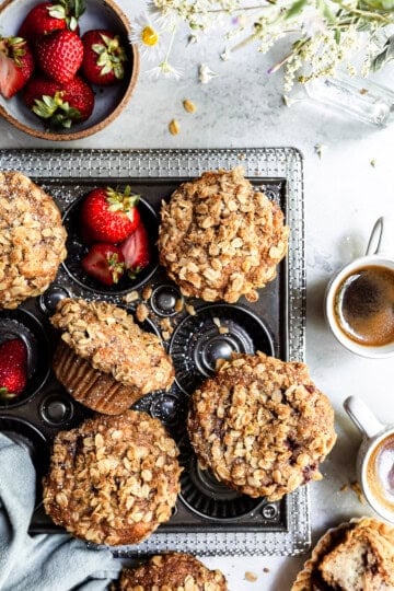 Vegan Roasted Strawberry Muffins with Oat Streusel