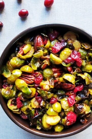 Roasted Cranberries, Brussels Sprouts and Pecans with Maple Mustard Dressing