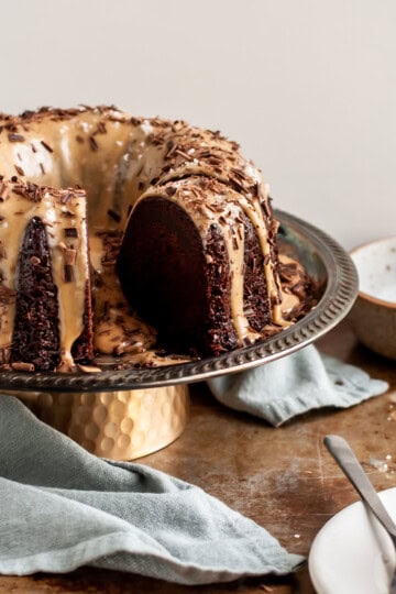 Vegan Chocolate Bundt Cake with Salted Peanut Butter Glaze