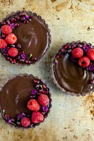 Vegan Chocolate Orange Truffle Tart with Candied Kumquats