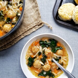This vegan spin on the classic Italian Wedding Soup is comforting, delicious, and full of texture and nourishment. Savory sausage bean balls are tucked into a warm broth with tiny pasta and vibrant greens. I used a gorgeous Redbor kale, but you can easily sub in spinach or escarole. Make the bean balls ahead of time to pop into the soup for an easy weeknight meal!