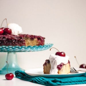 Great taste! I've never done an upside down cake before. Could you possibly add that it's the 1 tbspn of soy milk for the cherry syrup and not the 1 cup? I was wondering why the cherries were swimming around in the base when I made up the topping lol